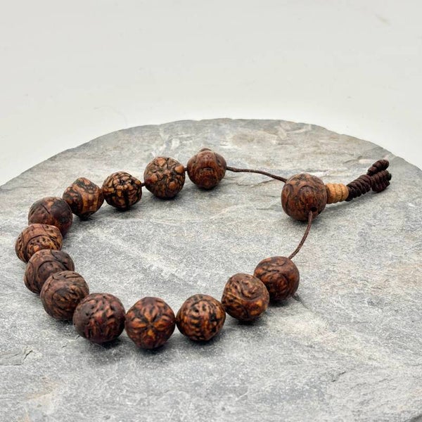 Deze Armband is een authentieke bodhi Armband. Deze zaden komen rechtstreeks uit een bodhiboom. De bodhiboom is een soort boom waaronder de Boeddha verlichting bereikte. Van mala's gemaakt van deze zaden is bekend dat ze erg krachtig zijn voor spirituele oefening.
