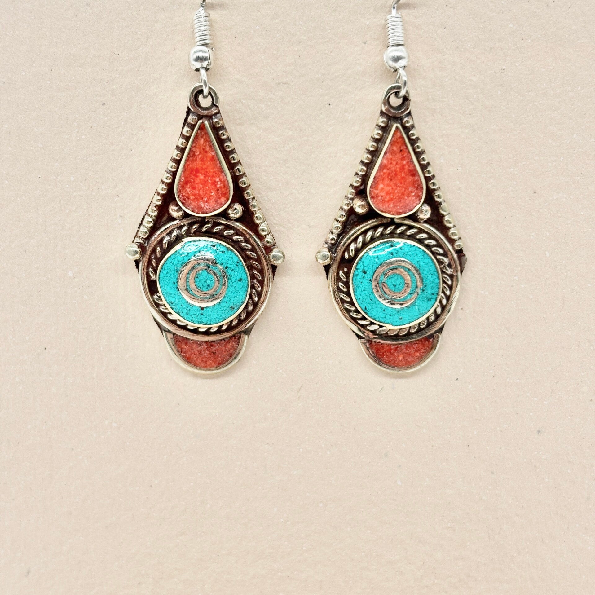 Handgemaakte Tibetaanse oorbel met het etnische Himalaya-ontwerp. Elk paar is gemaakt door onze bekwame vakmensen.