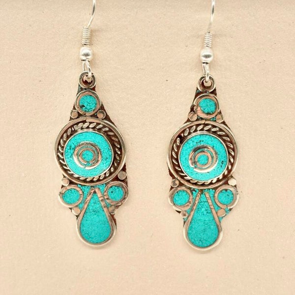 Handgemaakte Tibetaanse oorbel met het etnische Himalaya-ontwerp. Elk paar is gemaakt door onze bekwame vakmensen.