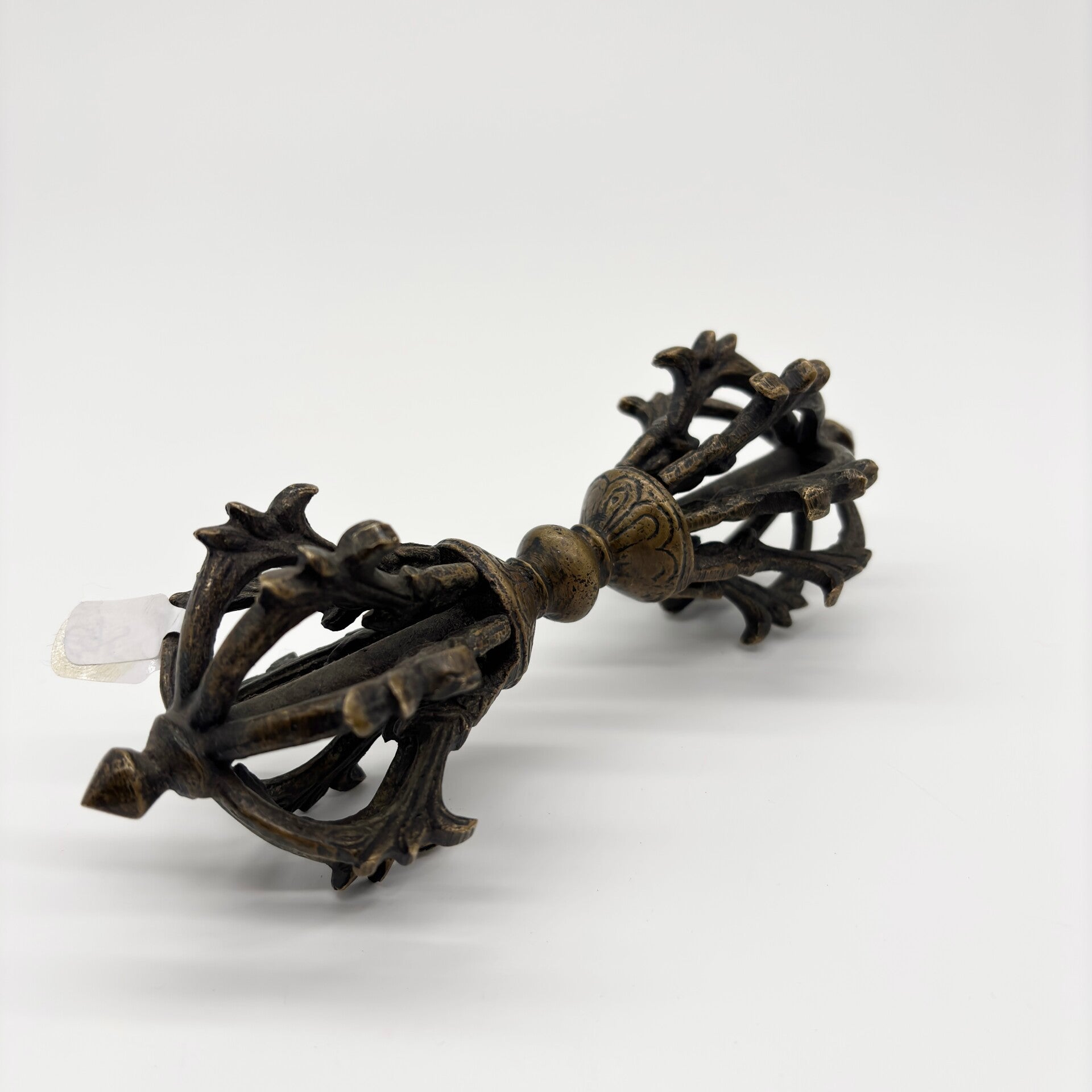 - Vernietigt alle soorten onwetendheid en is zelf onverwoestbaar. Ook bekend als Vajra in het Sanskriet symboliseert het bliksemschicht en Diamond. Net als de bliksemschicht klieft de vajra door onwetendheid. En als een diamant is het onverwoestbaar. Bij ritueel gebruik wordt de vajra vaak gebruikt in combinatie met de bel (Sanskriet ghaṇṭā; Tibetaanse dril bu). Letterlijk, elke keer dat we mediteren met de Bel en Dorje houden we ons bezig met een symbolisch compendium van de leer van de Boeddha. In onze handen is de Dorjee Yidam: mededogen en methode; de bel is Mandala: de hele wijsheid. Simpel gezegd, het zijn onafscheidelijke symbolen, omdat ze samen wijsheid en mededogen vertegenwoordigen. In het boeddhisme zijn zowel wijsheid als mededogen - samen - de weg naar verlichting.