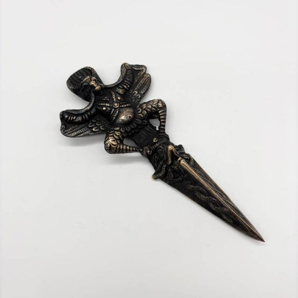 PHURBA symboliseert de boeddhistische incarnatie van de godheid Vajrakilaya. Grips variëren in ontwerp en geven een reeks goddelijke wezens weer. Het driezijdige mes staat voor onwetendheid, hebzucht en agressie.